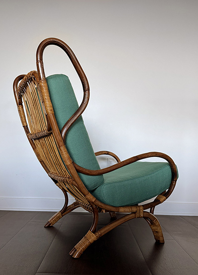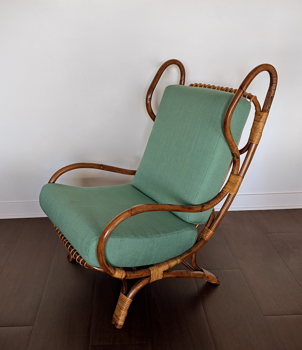751 Gio Ponti A pair of BP 16 ‘Continuum’ armchairs. Manufacturer: (Pierantonio) Bonacina 1963-1970 Bamboo and rattan 41”d x 22.5”w x 34.25” h Italy