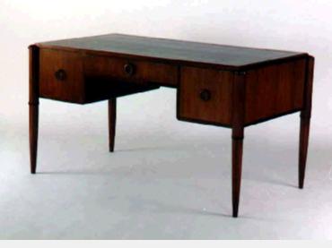 number 445 Maurice Dufrene desk 1920s mahogany and leather 52 1/2” wide x 29 1/2” deep x 28” high France