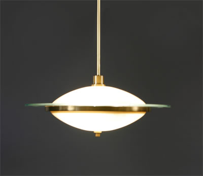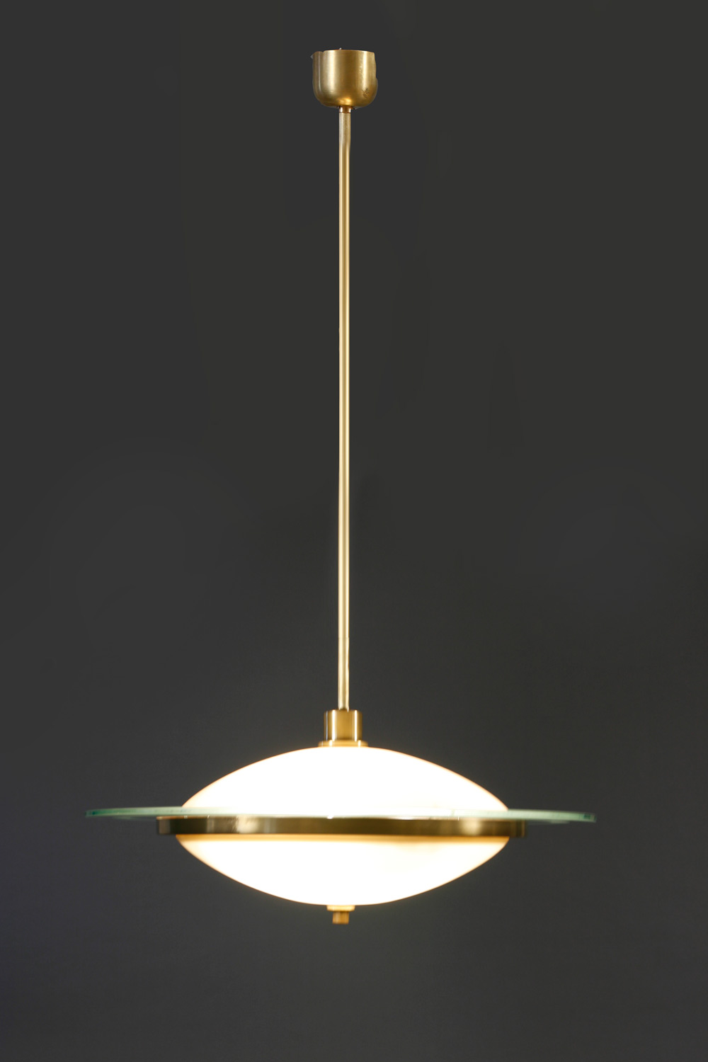number 670 Fontana Arte by Pietro Chiesa chandelier c. 1940 clear glass, white glass, and brass 24” Diameter Italy