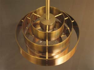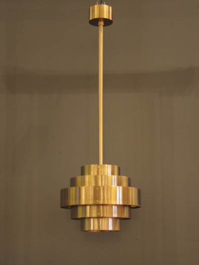 number 592 Jules Wabbes hanging lamp made: c. 1950 brass 10” diameter x 26” high Belgium