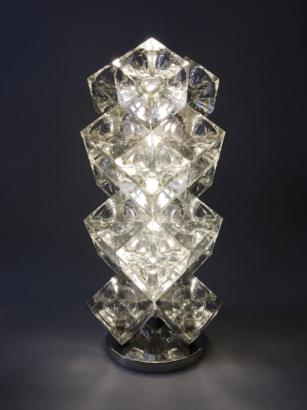 number 722 Poliarte "Tritone" table lamp 1970 glass and chrome 21 in.Hx10 in.Wx10 in.D Italy