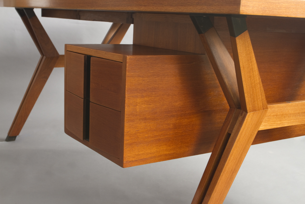 687 Ico Parisi for M.I.M. desk c.1960 teak and black metal 28 1/2" high x 70 3/4" wide x 38 1/4" deep Italy
