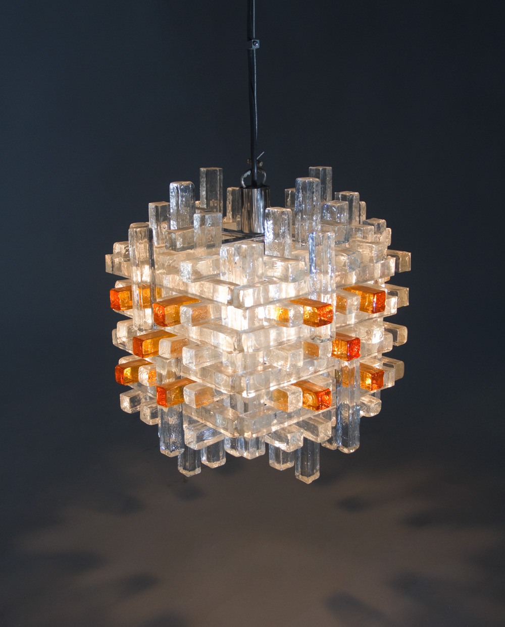 number 2027 Poliarte Sospensione cristallo greggio c 1970 Chandelier in raw crystal 13” square Verona, Italia