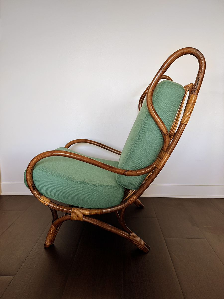 751 Gio Ponti A pair of BP 16 ‘Continuum’ armchairs. Manufacturer: (Pierantonio) Bonacina 1963-1970 Bamboo and rattan 41”d x 22.5”w x 34.25” h Italy