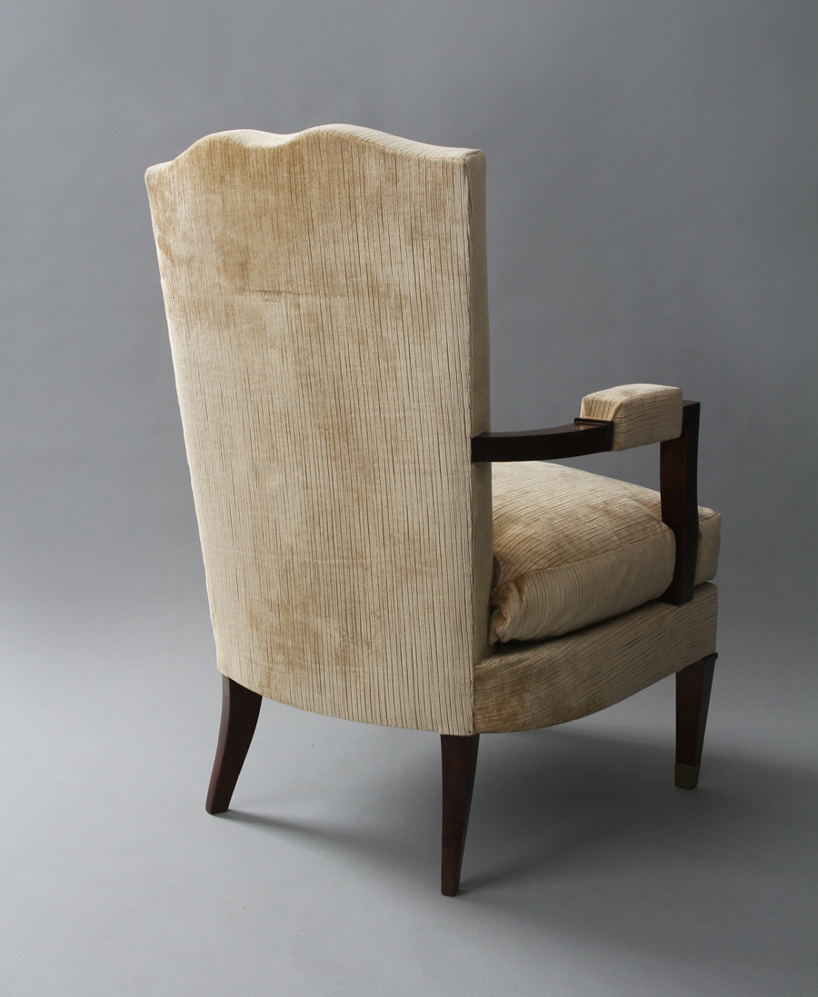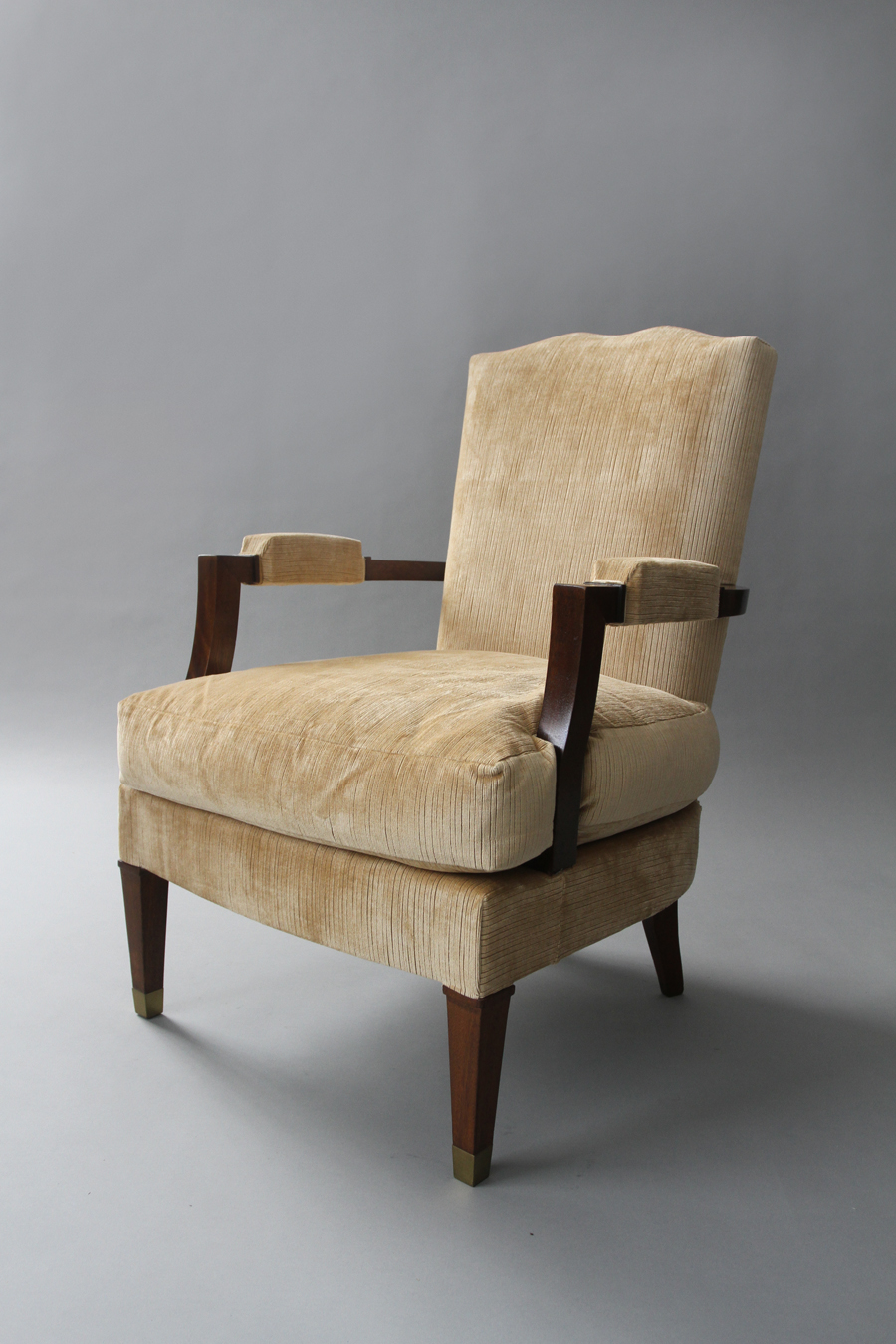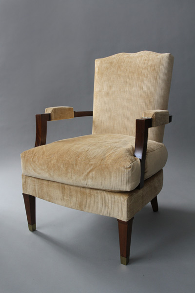 number: 571 Jules Leleu single armchair 1940's mahogany and bronze sabots 24 1/2" wide x 23" deep x 35" high France